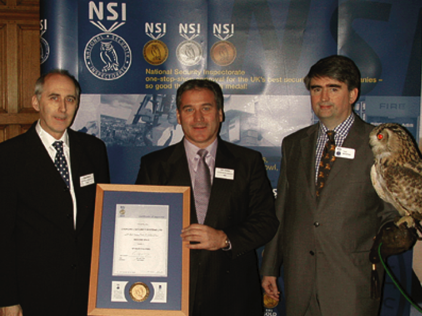 Churchill's Fire and Security Managing Director John Horton collects the highest accolade in the industry, NSI Gold Accreditation.